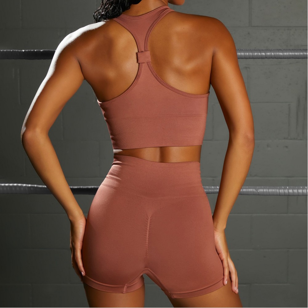 2021 autumn winter seamless Yoga suit set women's sports fitness High Waist Shorts V-shaped vest two-piece set